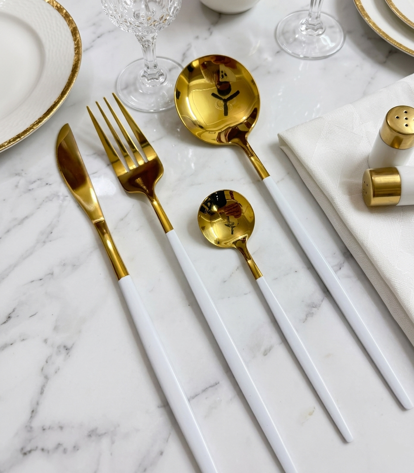 Nom du produit:Ensemble de couverts à manche blanc mat