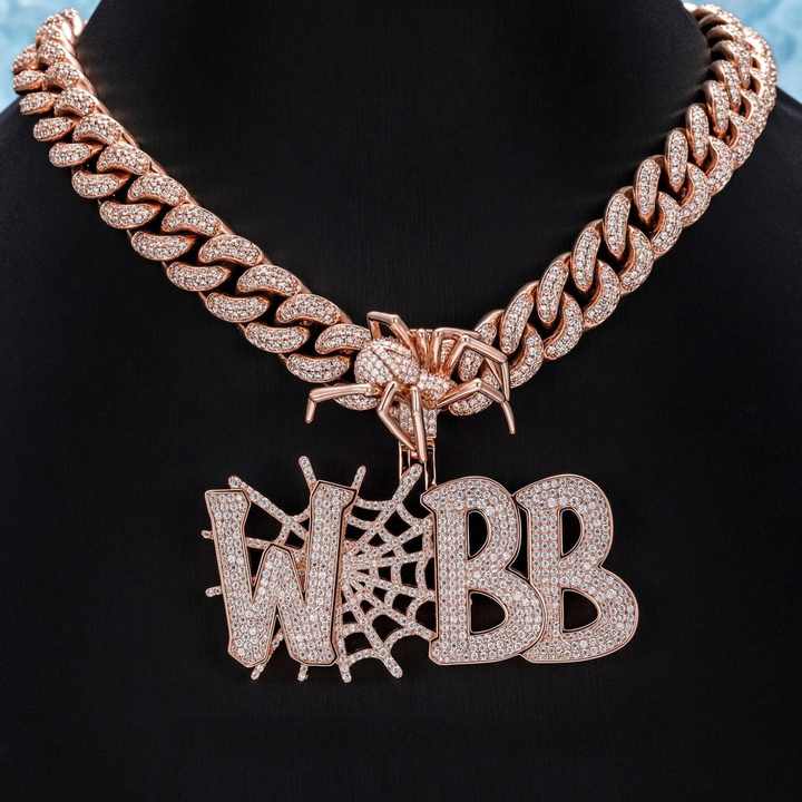 Personnalisable Iced Out Cuban Links VVS Round Moissanite Letter Pendant Hip Hop Collier pour les fêtes