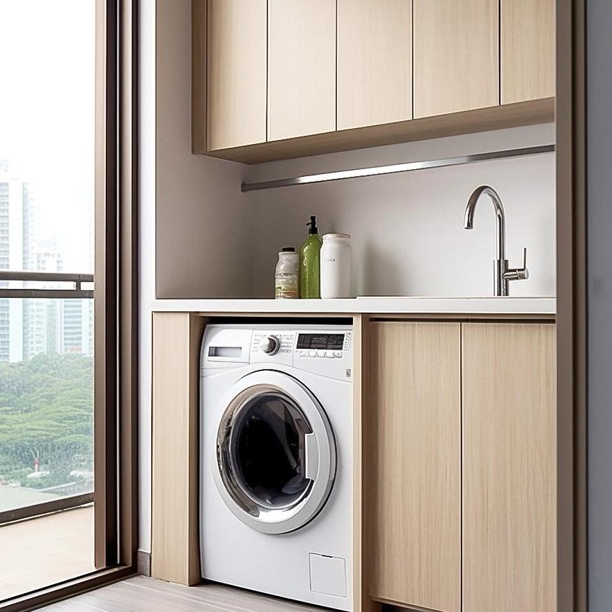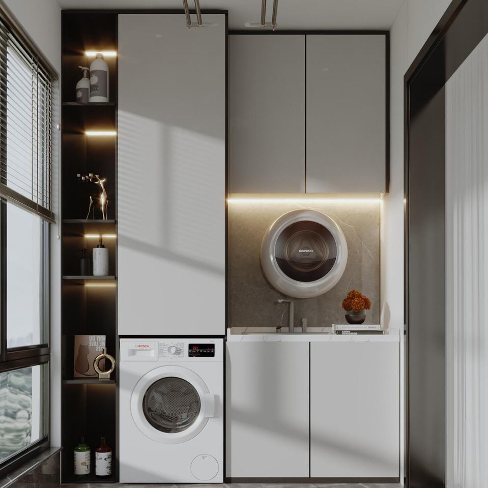 Armoire de balcon intégrée personnalisable conception en aluminium de l'espace de bassin haut-bas pour des appareils de blanchisserie pour la machine à laver