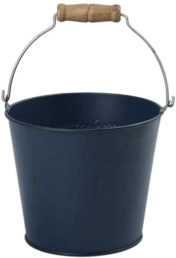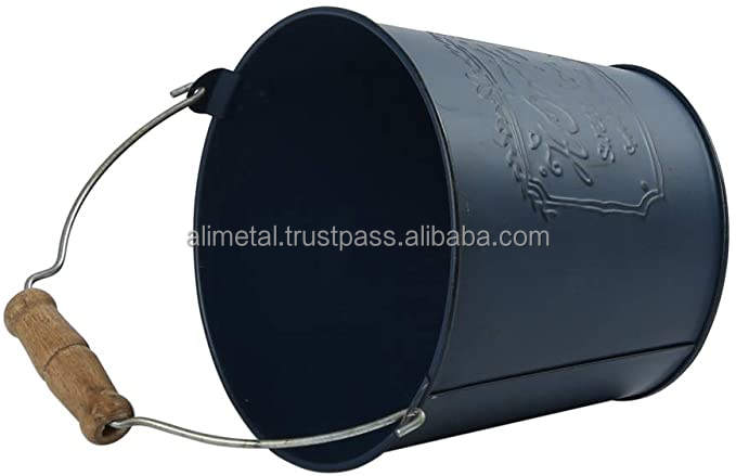 Seau en métal en fer personnalisable avec poignée enduit de poudre noire comme pot de fleur ou jardinière décoratif pour la maison et le jardin