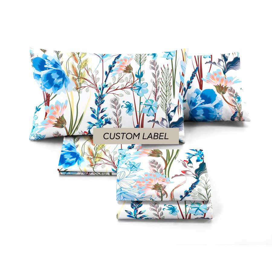 Ensembles de literie personnalisables en satin blanc pur coton de fabrication italienne drap-housse moderne roi 2 taies d'oreiller usine d'impression numérique