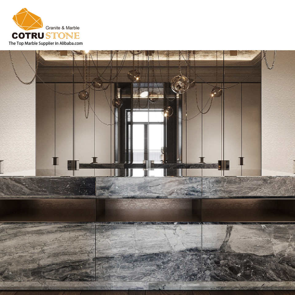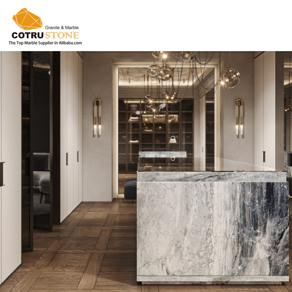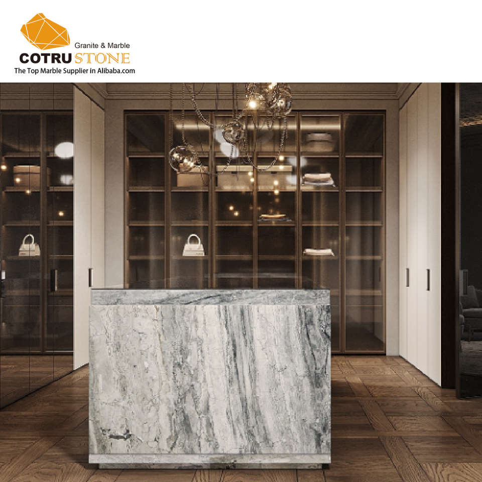 Comptoir en pierre naturelle personnalisable d'Italie, peinture de paysage, veines de marbre, îlot de cuisine pour bar à manger de luxe