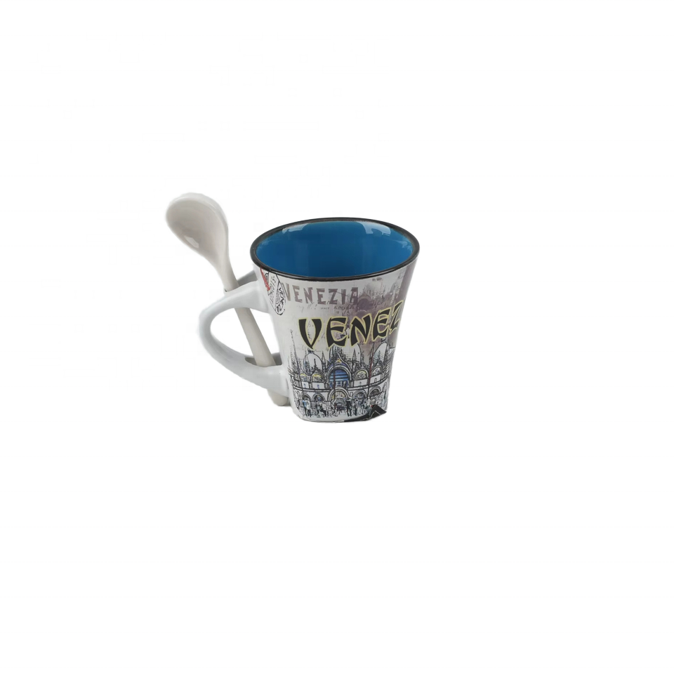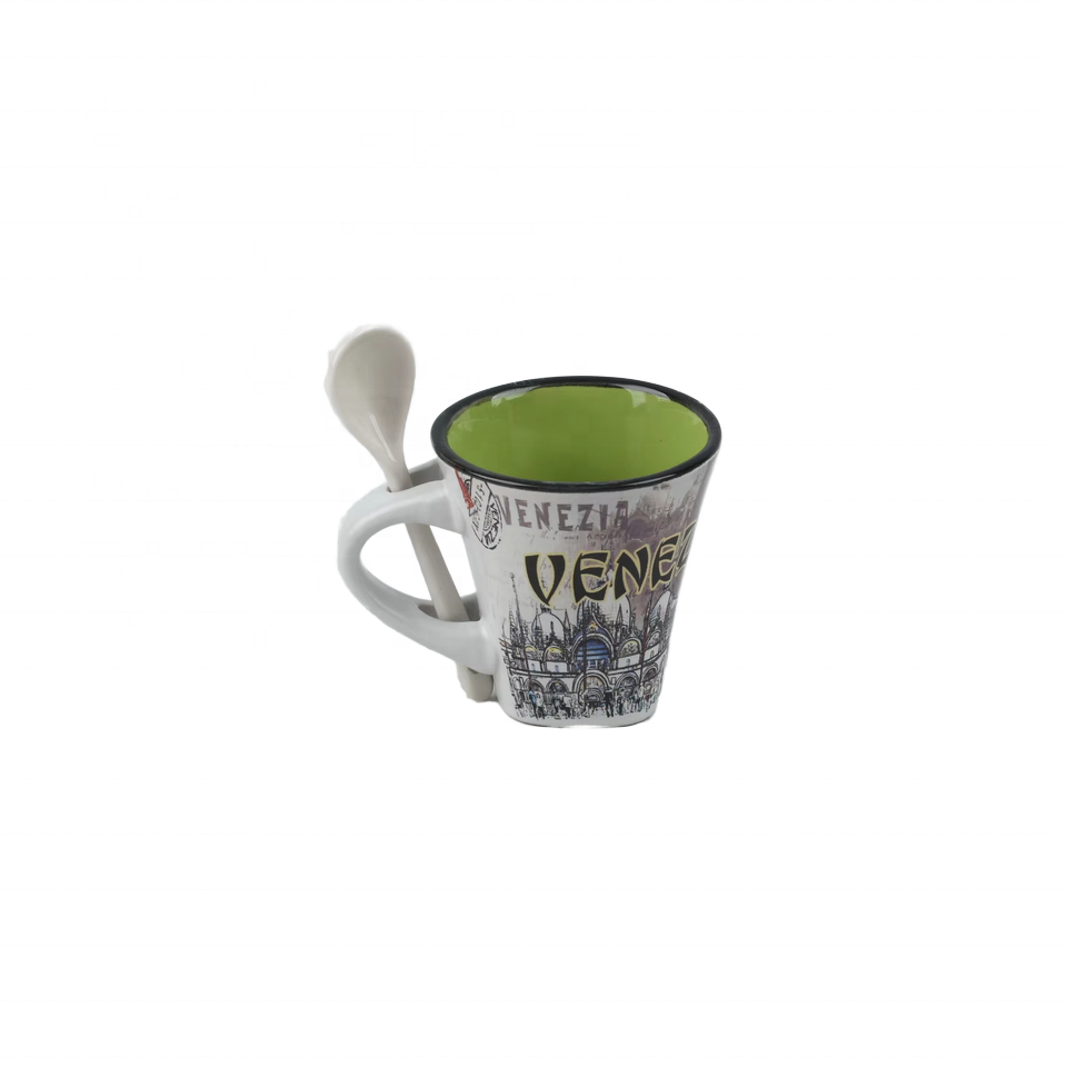 Tasse à café en porcelaine italienne personnalisable avec cuillère Souvenir parfait pour la visite de la ville et les amateurs de café Cadeaux personnalisés