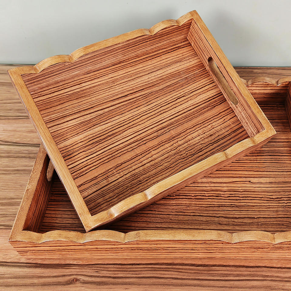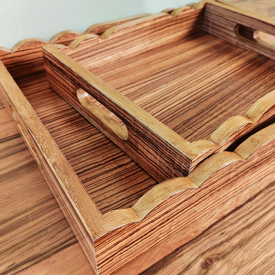 Grand plateau de service en bois d'acacia naturel avec poignée personnalisable pour la décoration de la maison et la table basse du petit-déjeuner