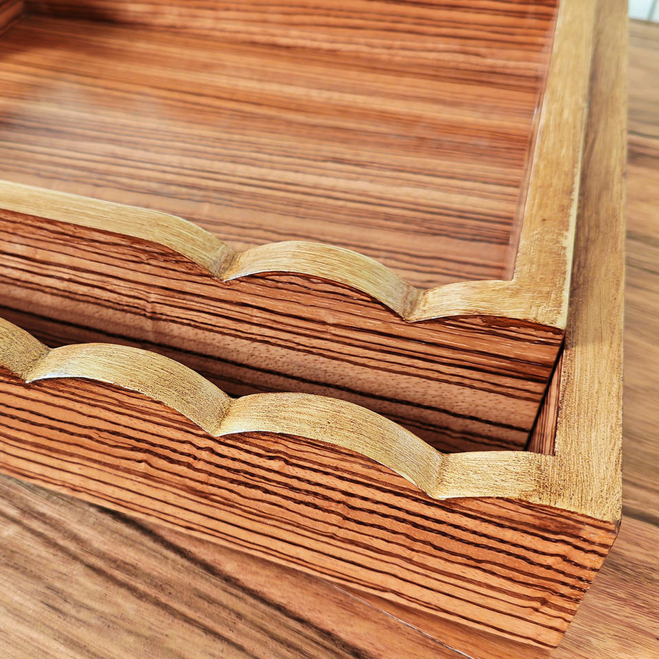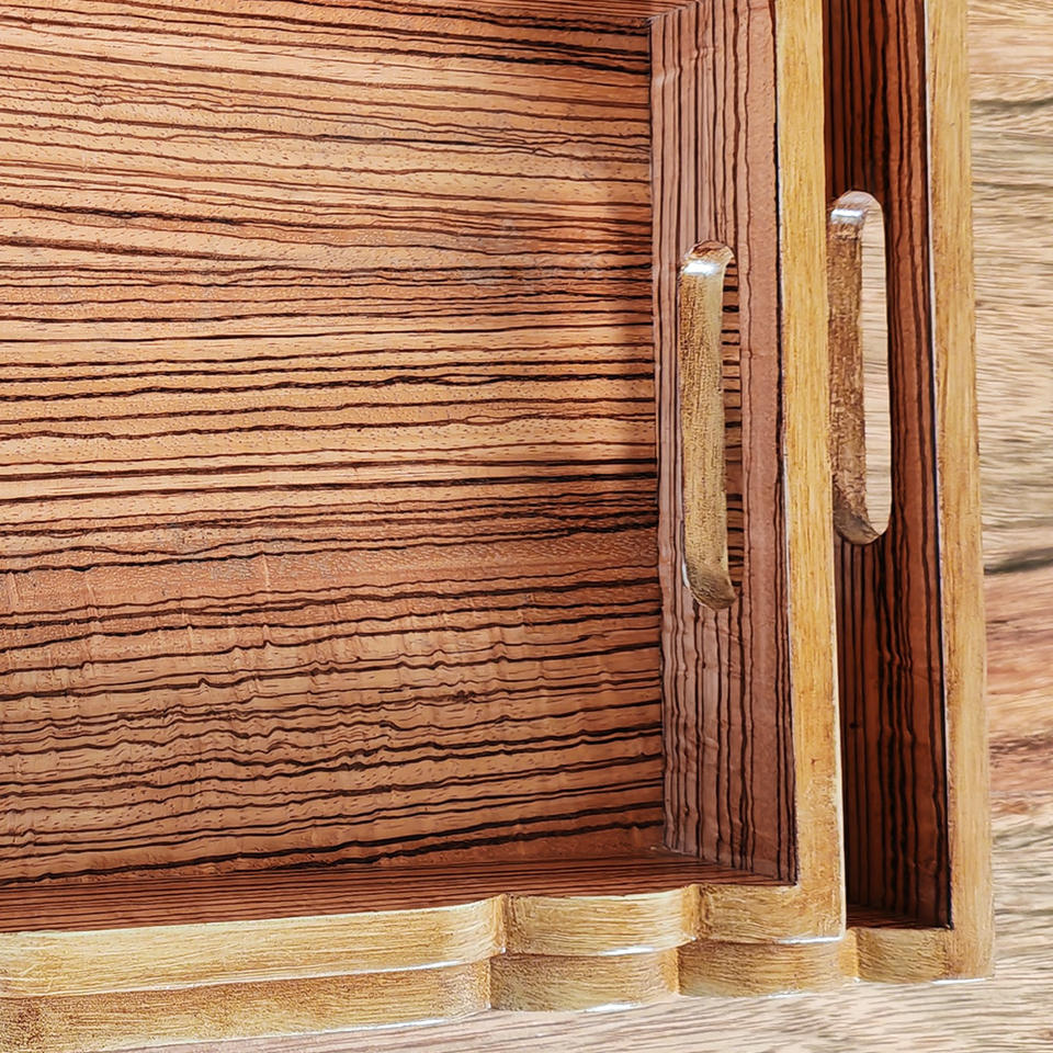 Large Natural Acacia Wood Serving Tray with Handle for Home