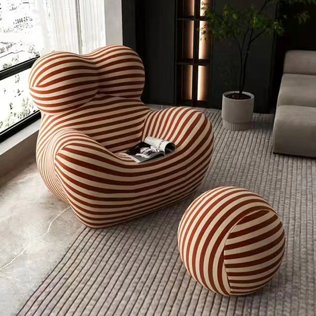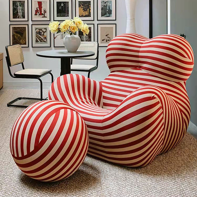 Canapé paresseux personnalisable chaise longue rouge rayé tissu canapé fauteuil décoration pour appartement hôtel