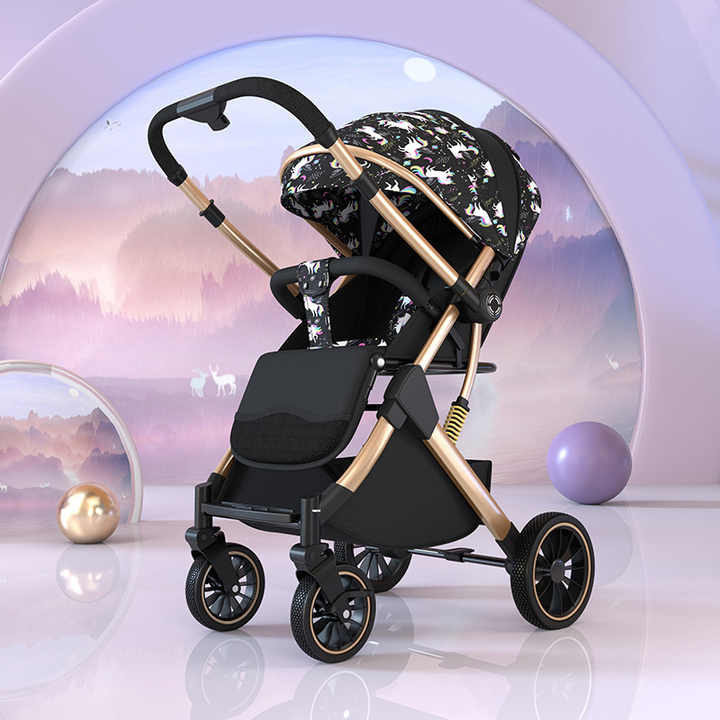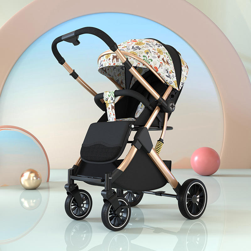 Poussette bébé pliable en métal légère et personnalisable à 4 roues, chariot bidirectionnel pour les voyages, pour les enfants de 3 ans, possibilité de s'asseoir et de se coucher
