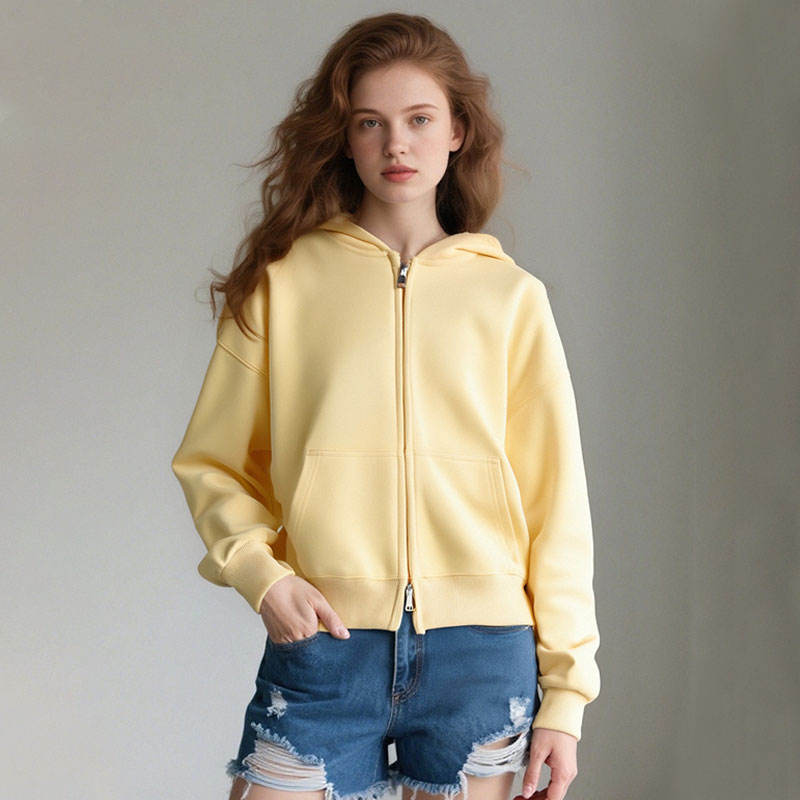 Sweat-shirt à capuche zippé en coton pur 100% 350g personnalisable avec logo, lourd, court, décontracté, veste