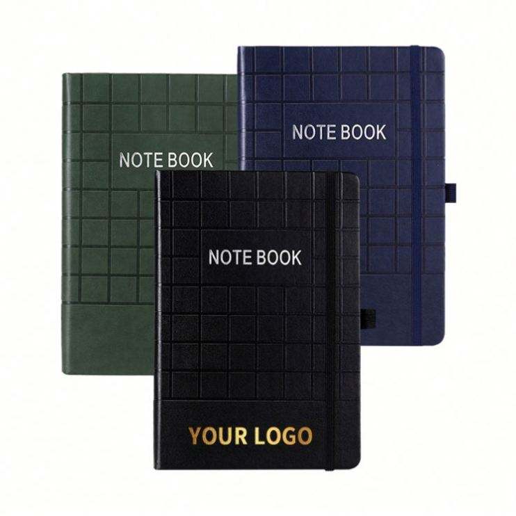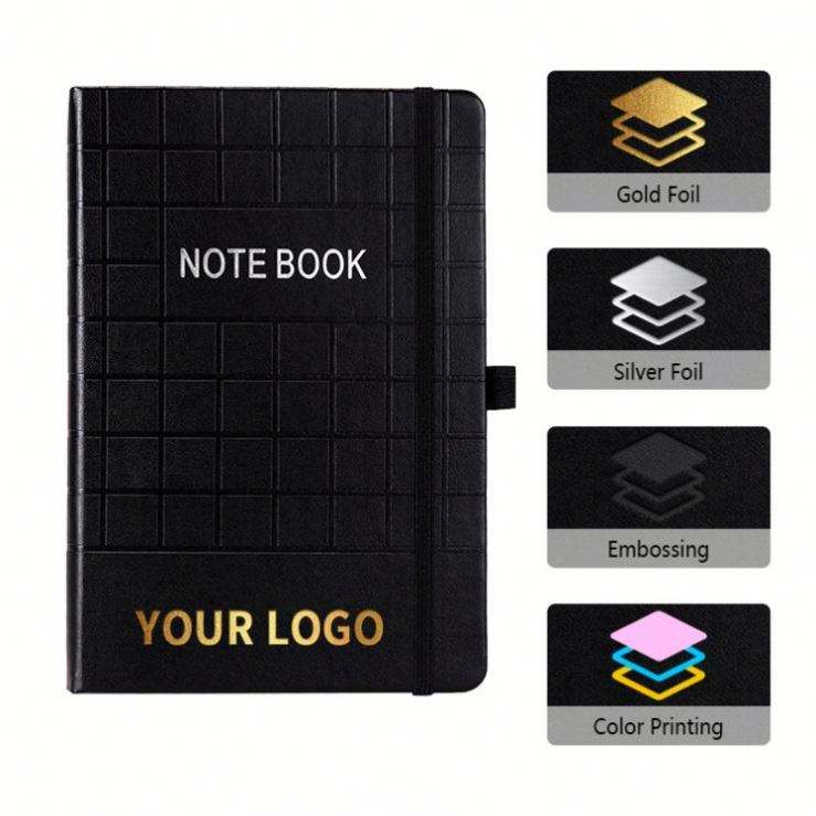 Carnet de notes personnalisé avec logo noir, ligné, A5, couverture rigide en cuir PU, pour le bureau