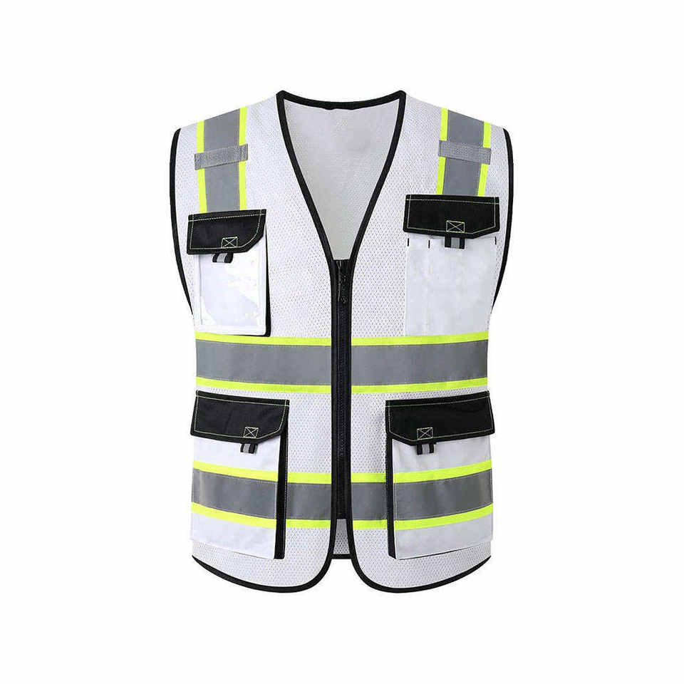 Gilet de sécurité haute visibilité personnalisable avec logo pour les travaux de construction, en coton avec bande réfléchissante argentée, impression DTF
