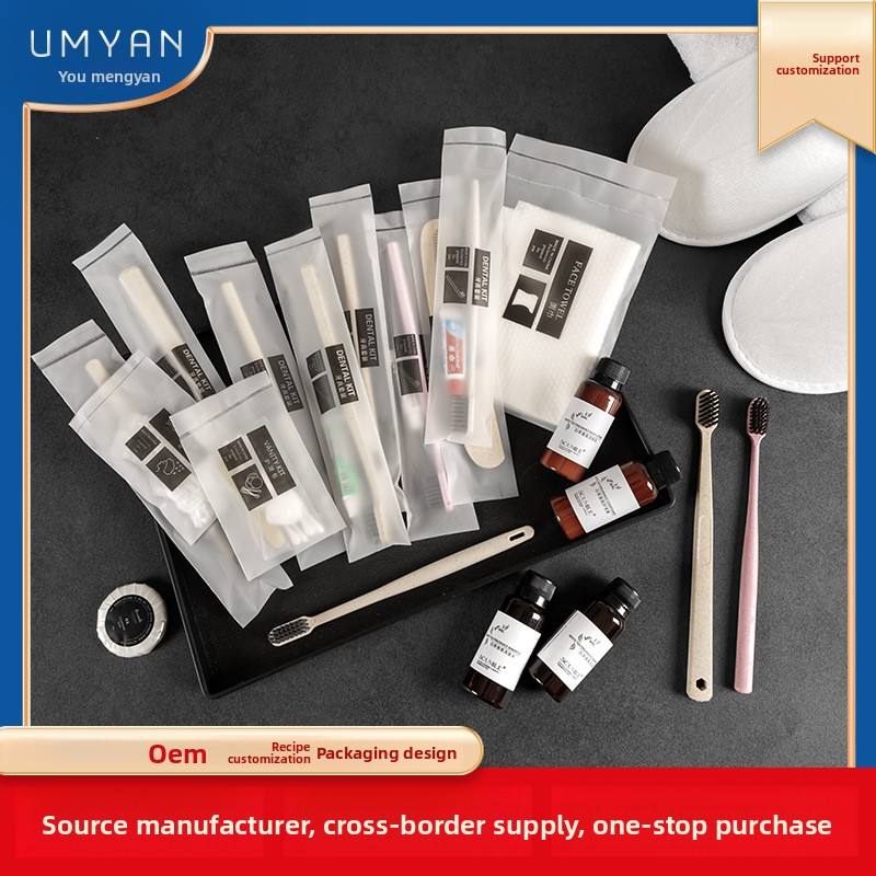 Customizable Logo Hotel Disposable Toiletry Set Regular Size Basic Cleaning Herbal Toothbrush Toothpaste Supplies Wholesale