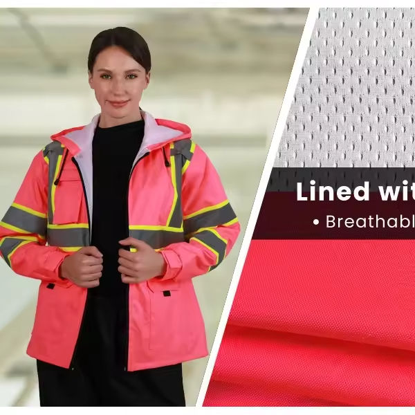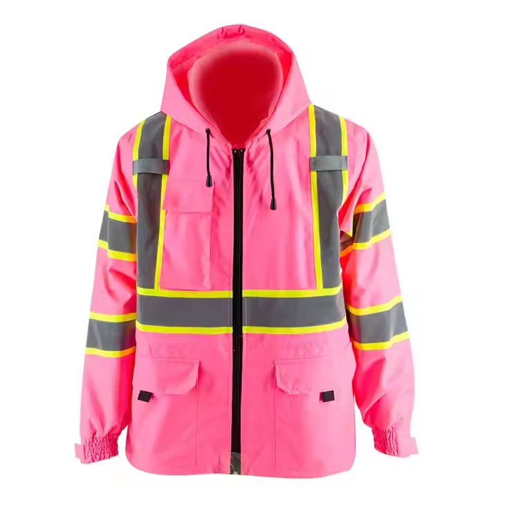 Veste de sécurité imperméable et respirante rose ANSI haute visibilité avec logo personnalisable pour le travail (hiver/printemps)