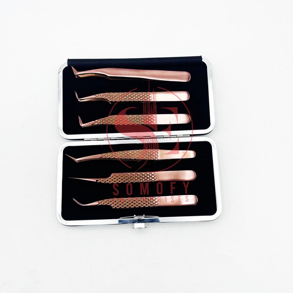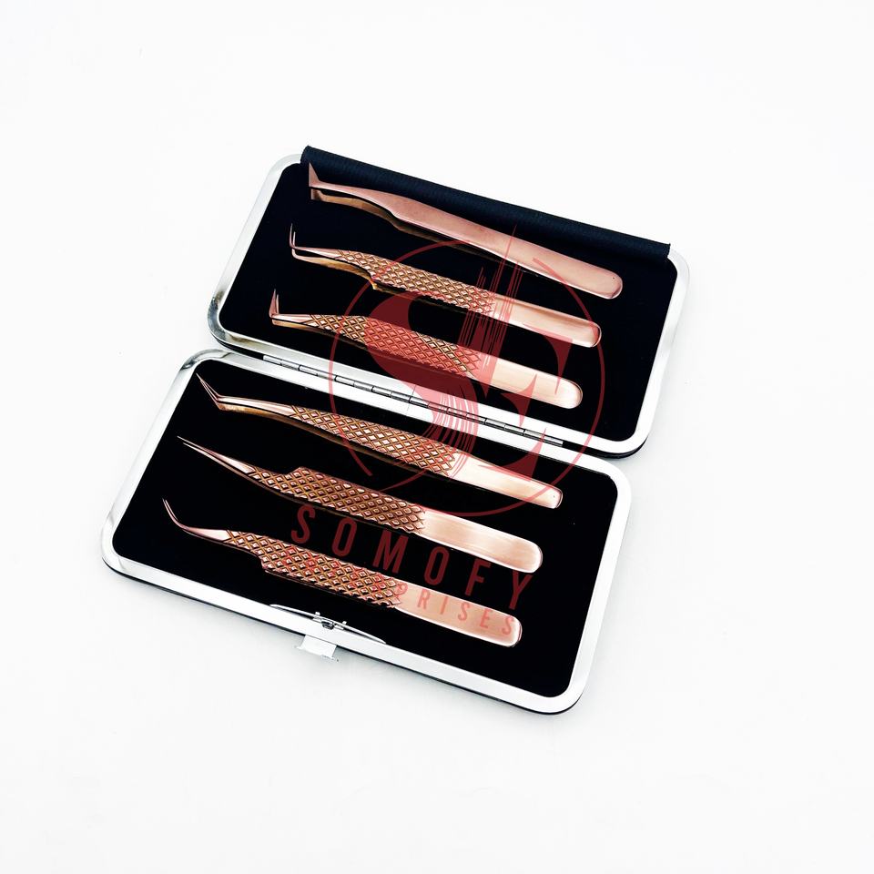 Pince à cils professionnelle en acier inoxydable or rose avec logo personnalisable Ciseaux à cils volumineux avec pointe en fibre