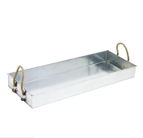 Personnalisable Logo Corde Poignée Plateau Arrondi Maison Hôtel Restaurant Décoratif Alimentaire Légumes Galvanisé Plateau De Service En Métal