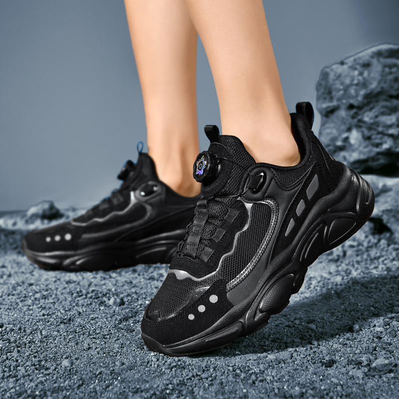 Baskets de course en cuir personnalisables avec logo, bouton rotatif, fermeture à bouton, souples, tendance, faciles à porter, pour hommes et femmes, rehaussantes