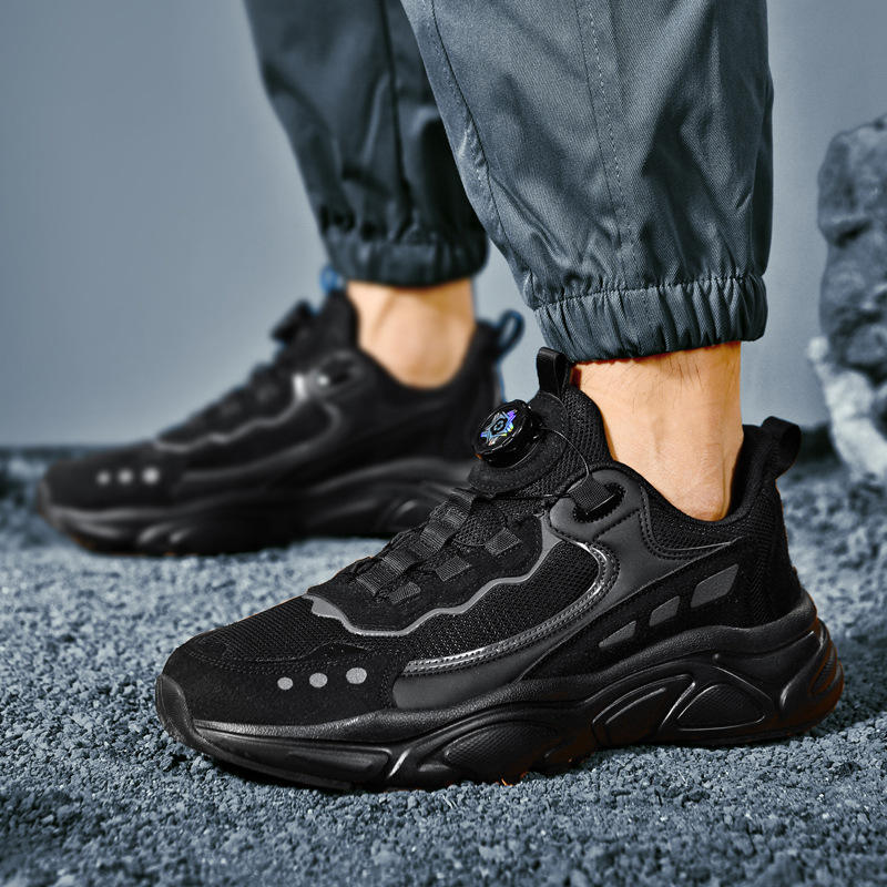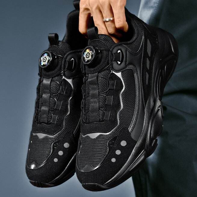 Baskets de course en cuir pour hommes et femmes, avec logo personnalisable, design à bouton rotatif, auto-laçage facile à porter, augmentant la taille, sport épais