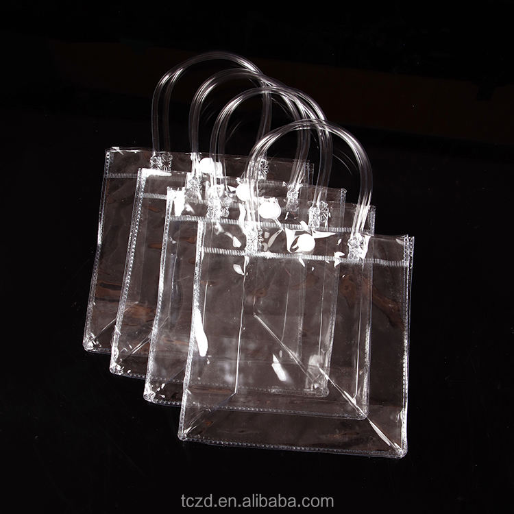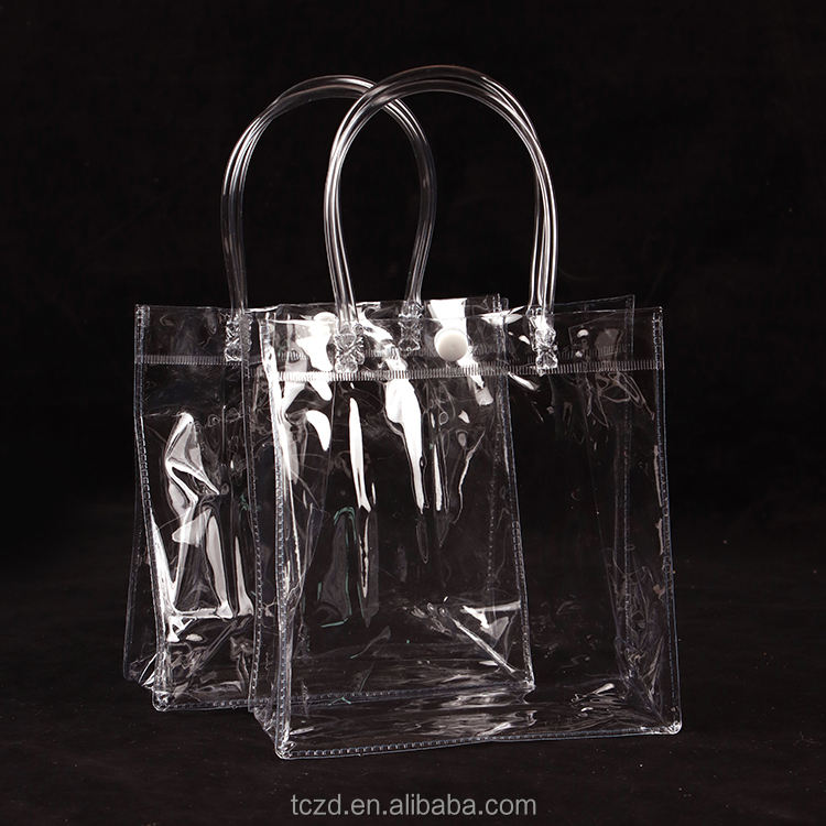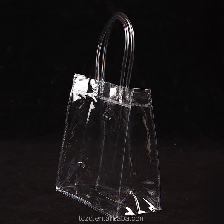 Sac d'épicerie en PVC transparent avec logo personnalisable fourre-tout en plastique transparent imperméable et réutilisable pour usage quotidien