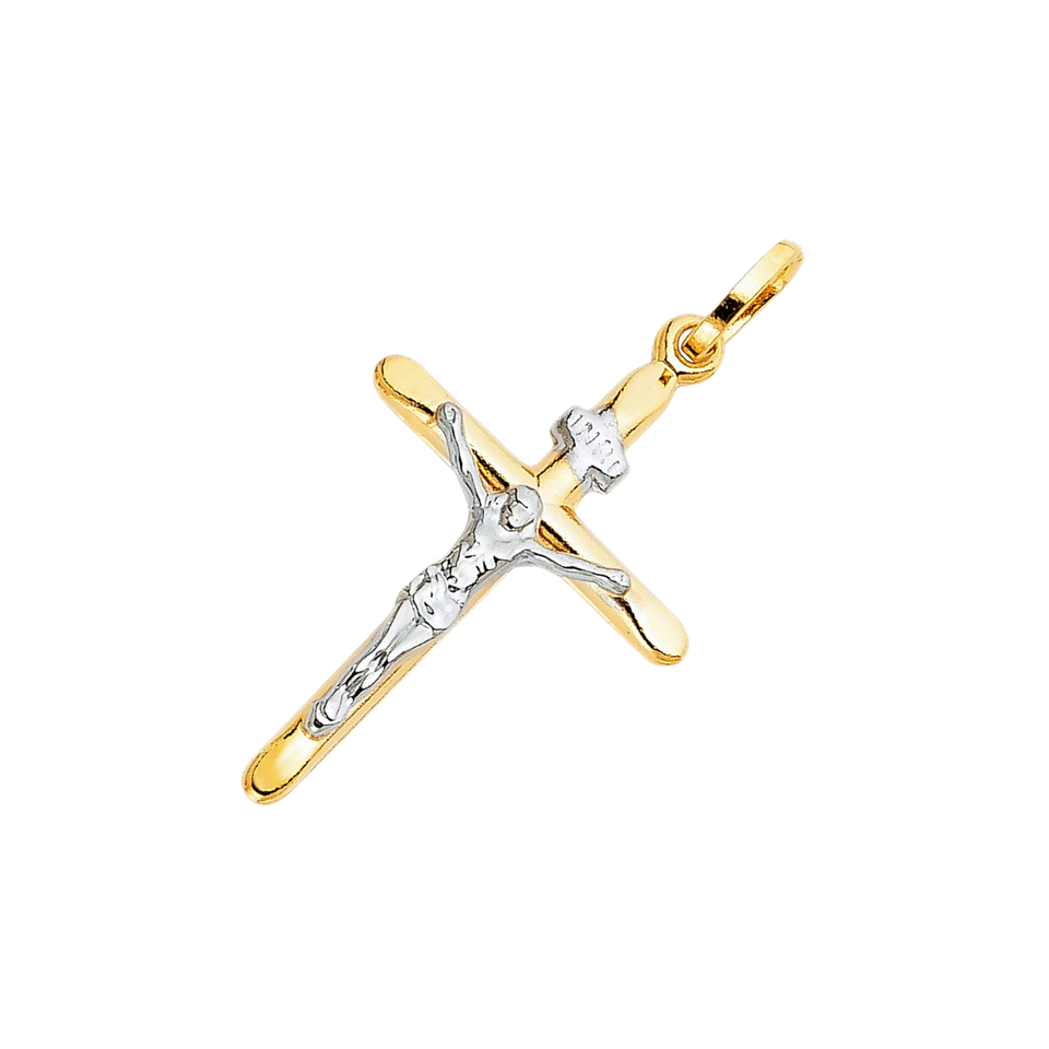 Logo personnalisable Trendy Bicolore Plaqué Jésus Croix Pendentif Étanche Non-ternir Alliage Classique Chrétien Laiton Cuivre Diamant