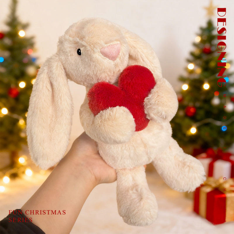 Customizable Lop-Eared Bunny Series Plush Toy - Heart/Christmas Tree Holding Kids Companion ASTM F963