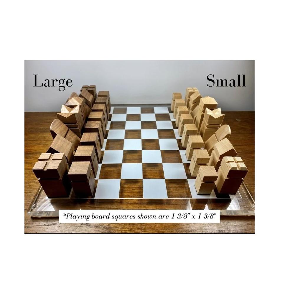 Jeu d'échecs de luxe personnalisable en bois d'érable, pièces d'échecs géométriques minimalistes uniques, coffret cadeau de haute qualité pour collectionneurs