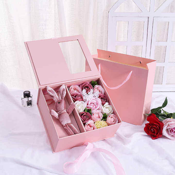Boîte cadeau en carton magnétique personnalisable avec couvercle à fenêtre pour bijoux, coffret cadeau, design d'emballage, modèle PBX111