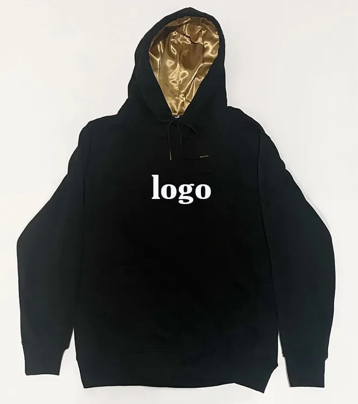 Pull à capuche 100% coton pour hommes personnalisable Sweat-shirt d'hiver doublé de satin Design brodé Impression numérique