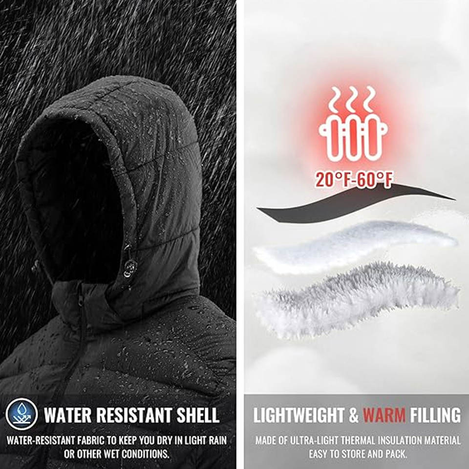 Veste matelassée à capuche personnalisable pour homme, légère, résistante à l'eau, isolée, pour l'hiver, avec capuche amovible