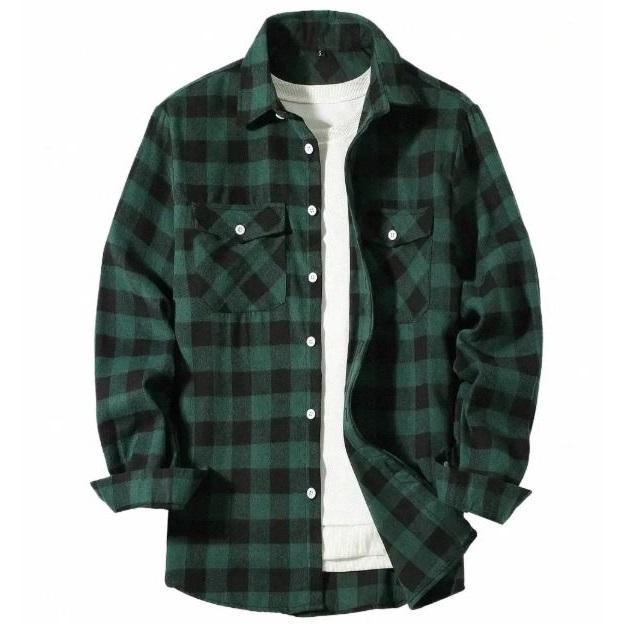 Chemise en flanelle à manches longues personnalisable pour hommes nouvelle usine à la mode coupe ample décontracté Plaid Design respirant tricoté de haute qualité