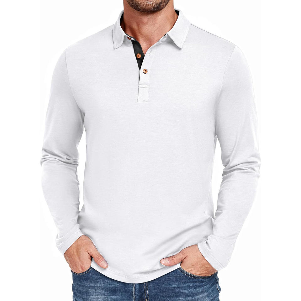 Chemises polo pour hommes à manches longues personnalisables pour le printemps/été, tissu jersey respirant avec motif uni à col montant
