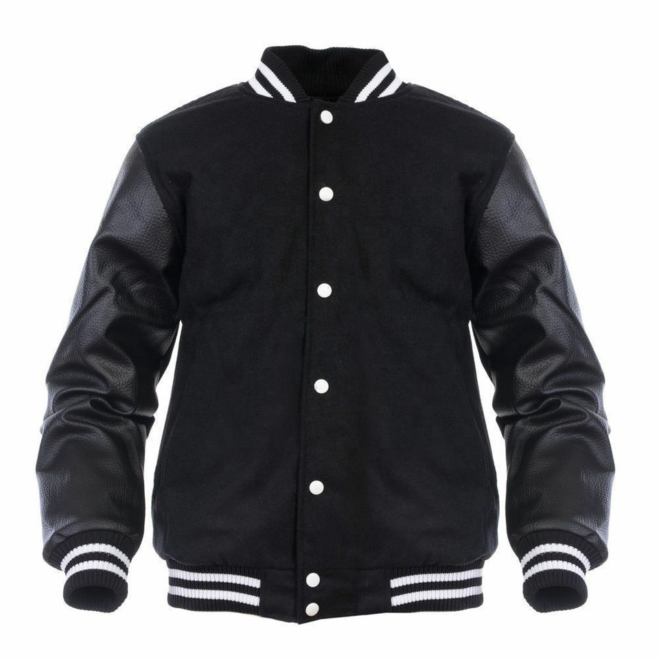 Personnalisable Hommes PU Cuir Manches Baseball Varsity Veste 100% Coton Lâche Formelle Fermeture Éclair Collège Laine Bomber Manteau Letterman