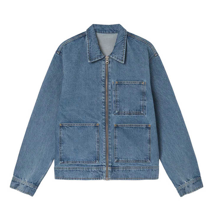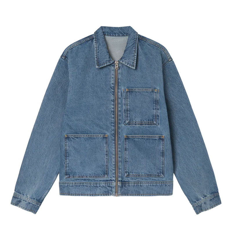 Personnalisable 100% coton hommes Slim col montant Denim veste foncé lavé vêtements d'extérieur d'hiver pour un style décontracté