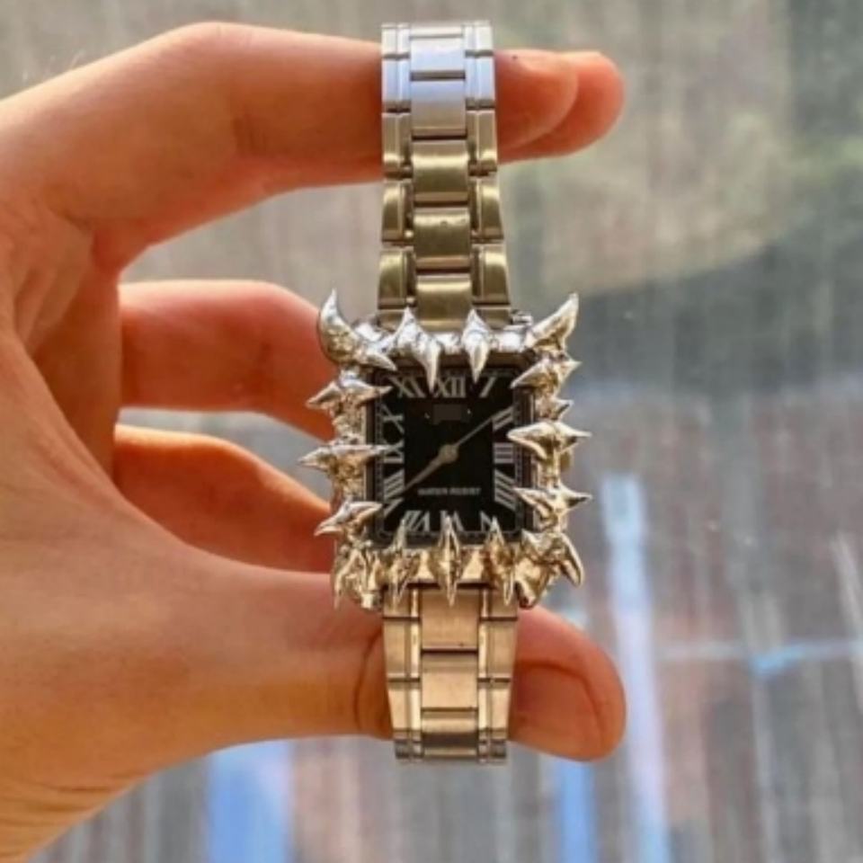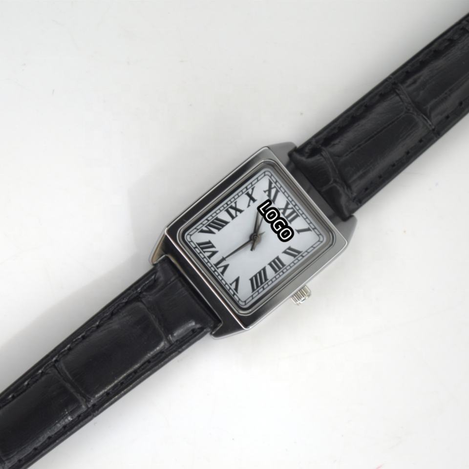 Montre personnalisable pour homme en acier inoxydable avec mouvement Miyota à quartz, bracelet en cuir, décorations carrées à pointes gothiques, 41 mm, chiffres romains