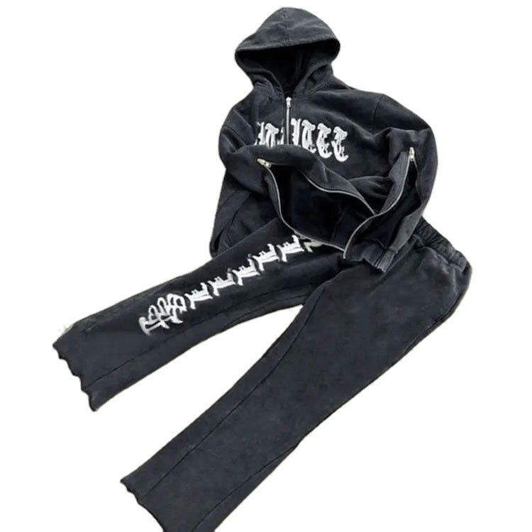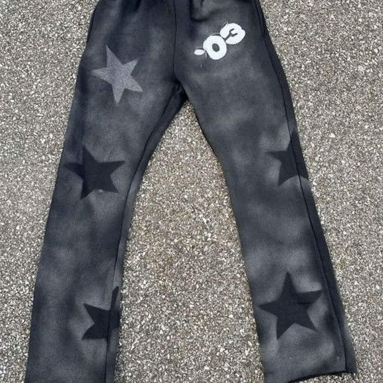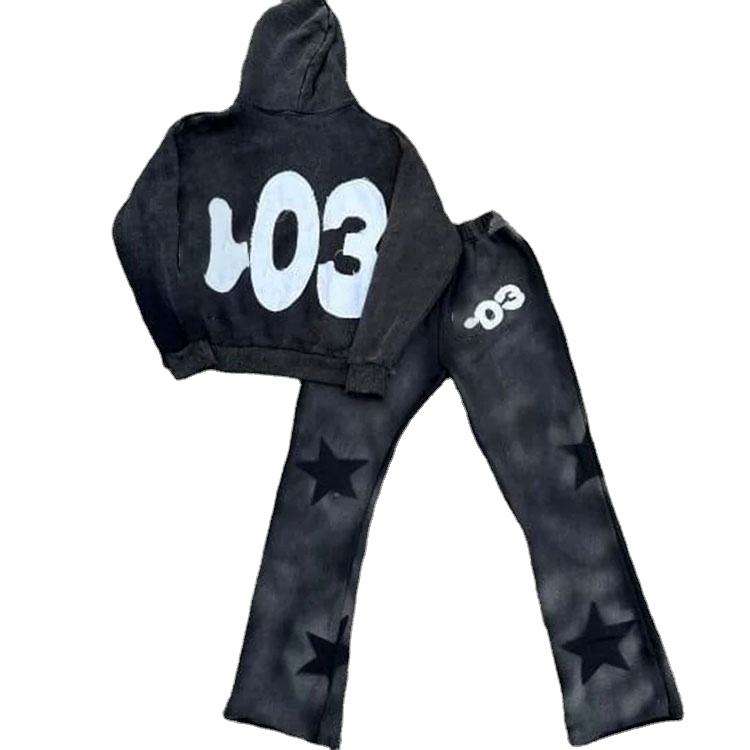 Pull-over de style américain personnalisable pour homme Pantalon et sweat à capuche évasé avec logo imprimé bouffant empilé en 3D Taille XS