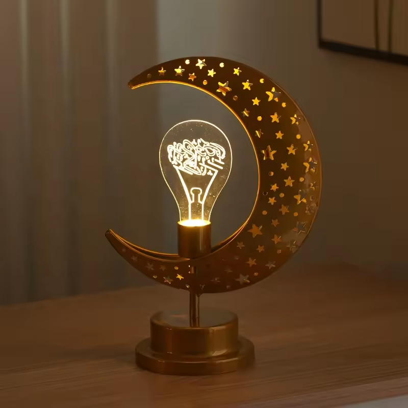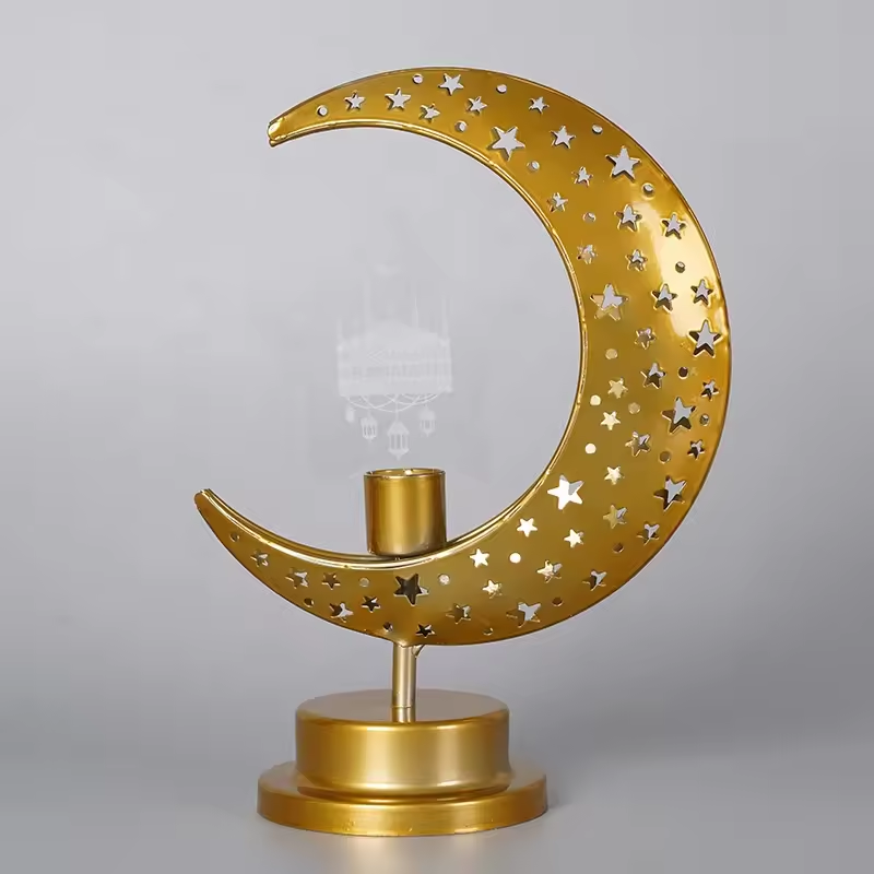 Lampe de lune du prophète arabe Muhammad artisanale en métal personnalisable pour le Ramadan et l'Aïd décoration de la maison pour les musulmans
