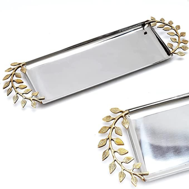 Plateau de service personnalisable en acier inoxydable, design solide, sans BPA, écologique, forme rectangulaire pour la maison, les restaurants, les plats et les assiettes