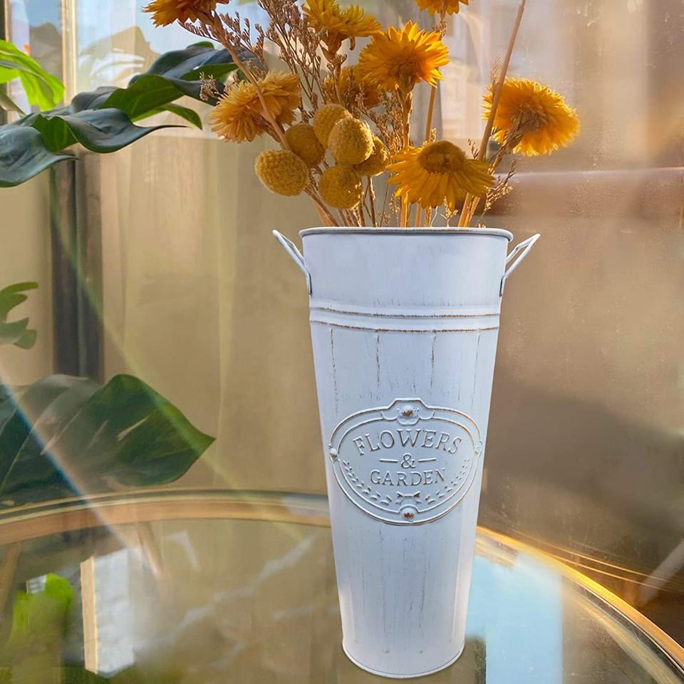 Customizable Metal White Decorative garden and focal French Flower Bucket for home and garden decor