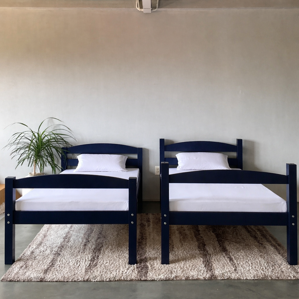 Lit superposé minimaliste bleu foncé personnalisable, meubles de chambre à coucher en bois sur mesure pour enfants