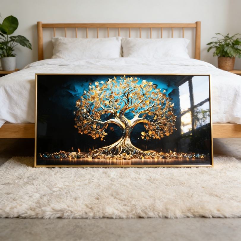 Peinture sur Porcelaine Cristalline Personnalisable, Paysage Arbre Bleu Moderne, Impression HD, Décoration Murale pour Salon