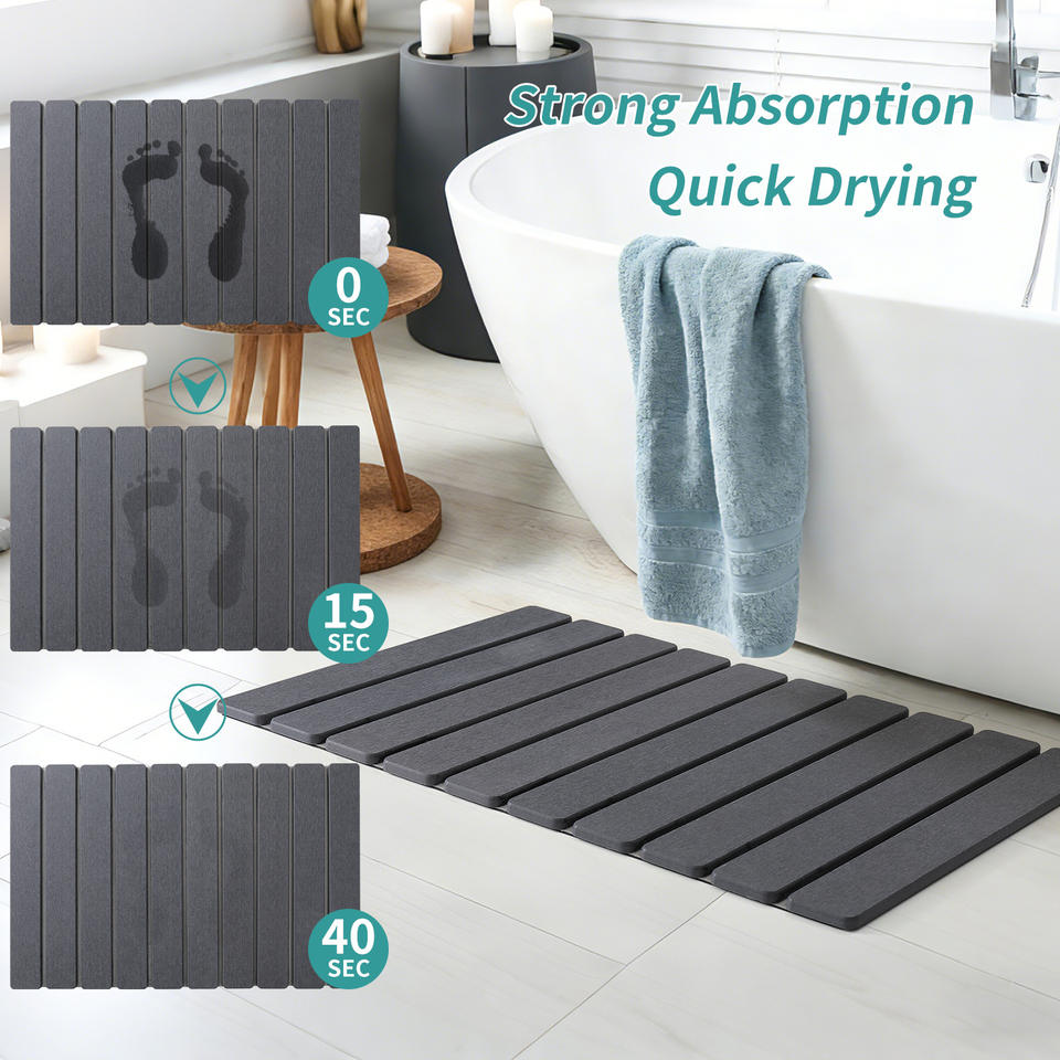 Tapis de bain antidérapant super absorbant à séchage rapide en terre de diatomée, design moderne personnalisable, pliable, pour salle de bain et douche