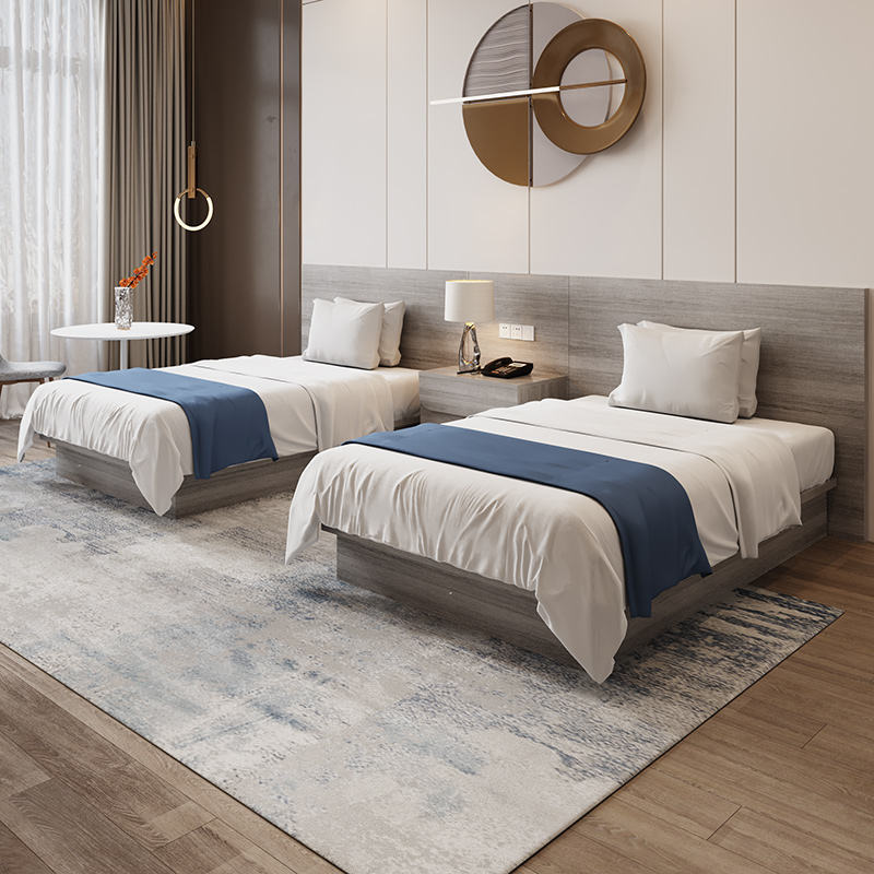 Ensemble de chambre à coucher d'hôtel moderne personnalisable Lit double standard Armoire individuelle en bois pour Apartamentos Habitaciones Personas
