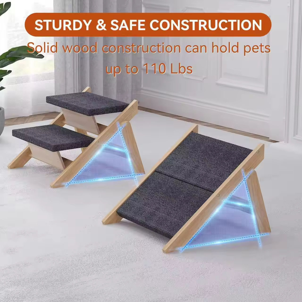Rampe pour animaux de compagnie en bois massif et bambou, carrée, moderne, personnalisable, escalier continu pour chien, amovible, lavable, utilisable en intérieur/extérieur, pliable, cadeau