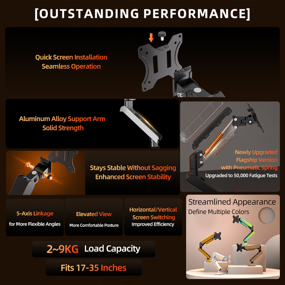 Bras de moniteur personnalisable 17-35 pouces, support de bureau ultra flexible avec VESA 75x75/100x100 | Impression de logo prise en charge | Articulation complète