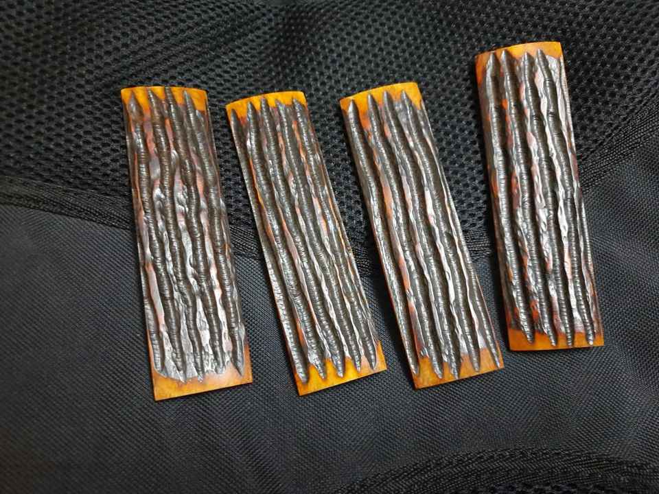 Écailles de manche de couteau en os de buffle naturel multicolores personnalisables, jigged avec des écailles multicolores teintées en os, style corne d'Inde