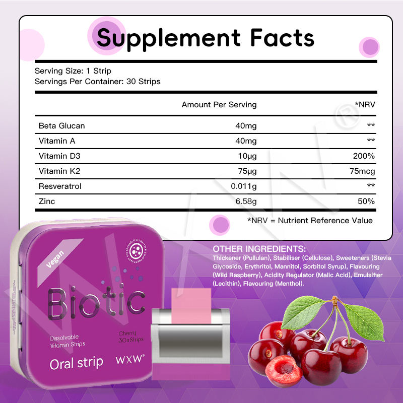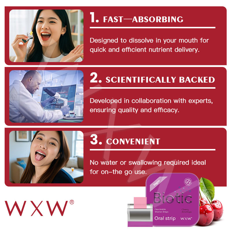 Bandes de film sublinguales multivitaminiques personnalisables Bandes orales efficaces à action rapide Film mince oral à haute absorption pour la peau des cheveux