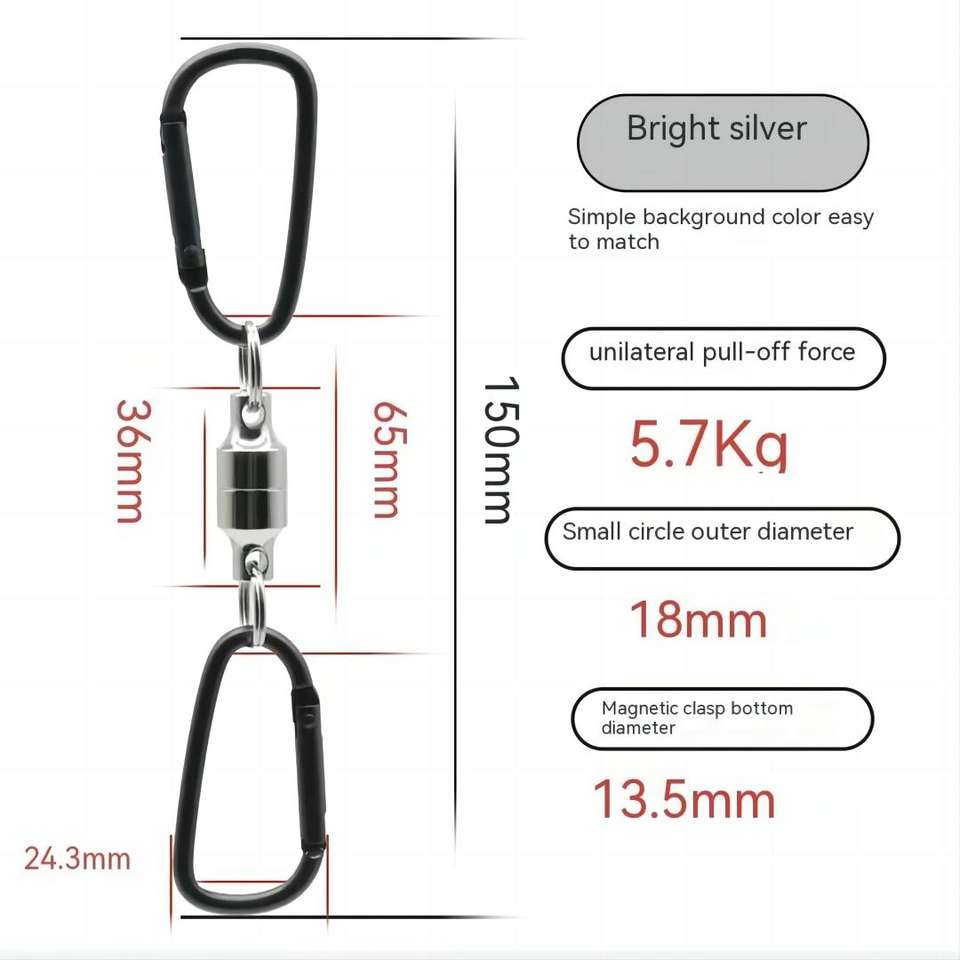 Magnetic hooks for fishing:Coil carabiner clip magnet net release