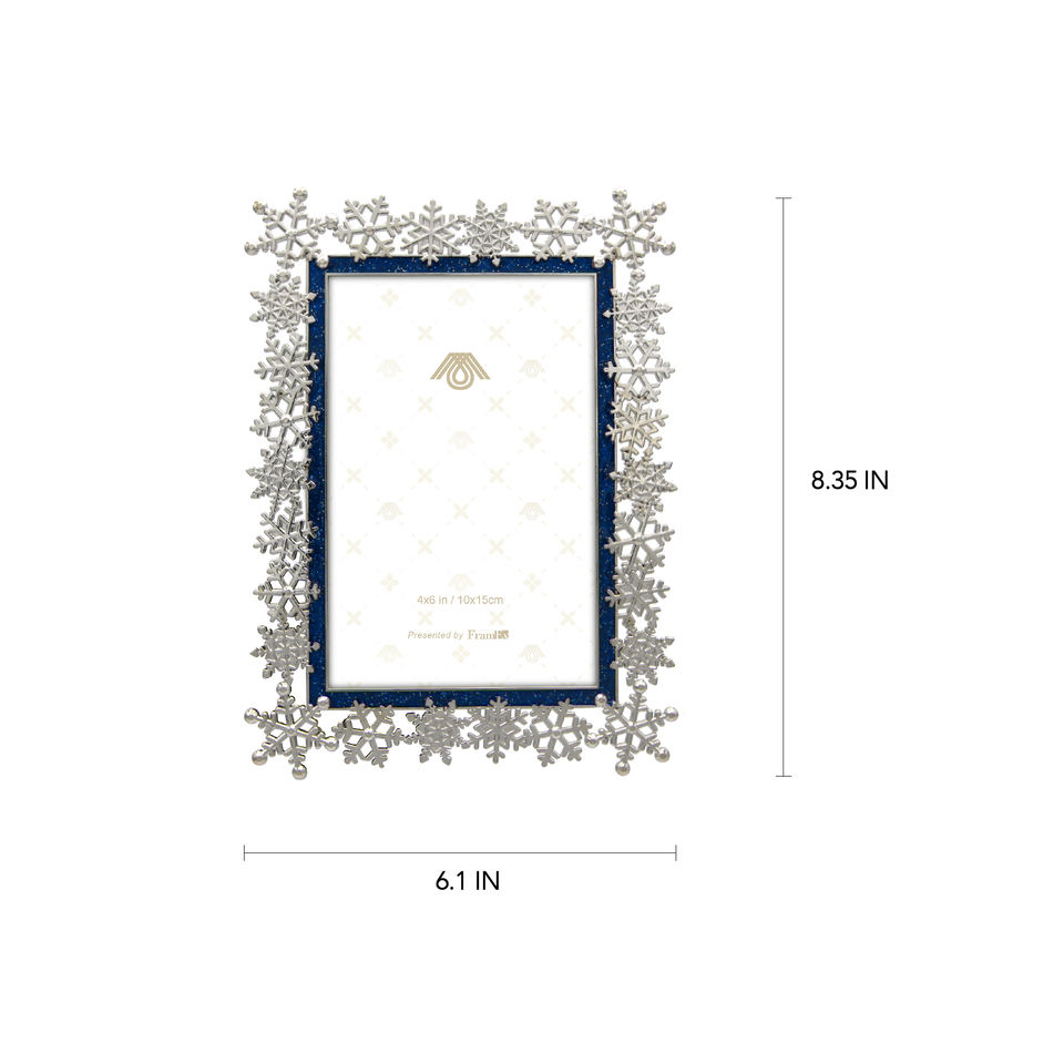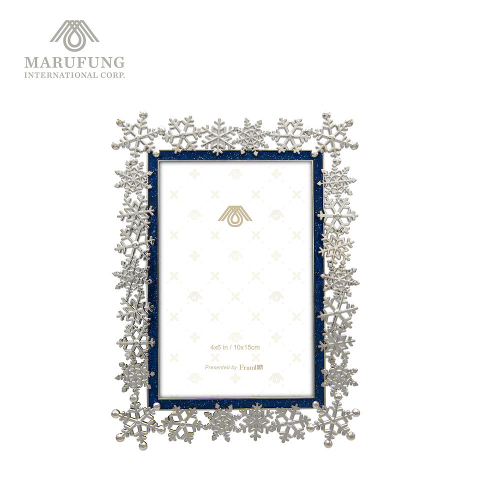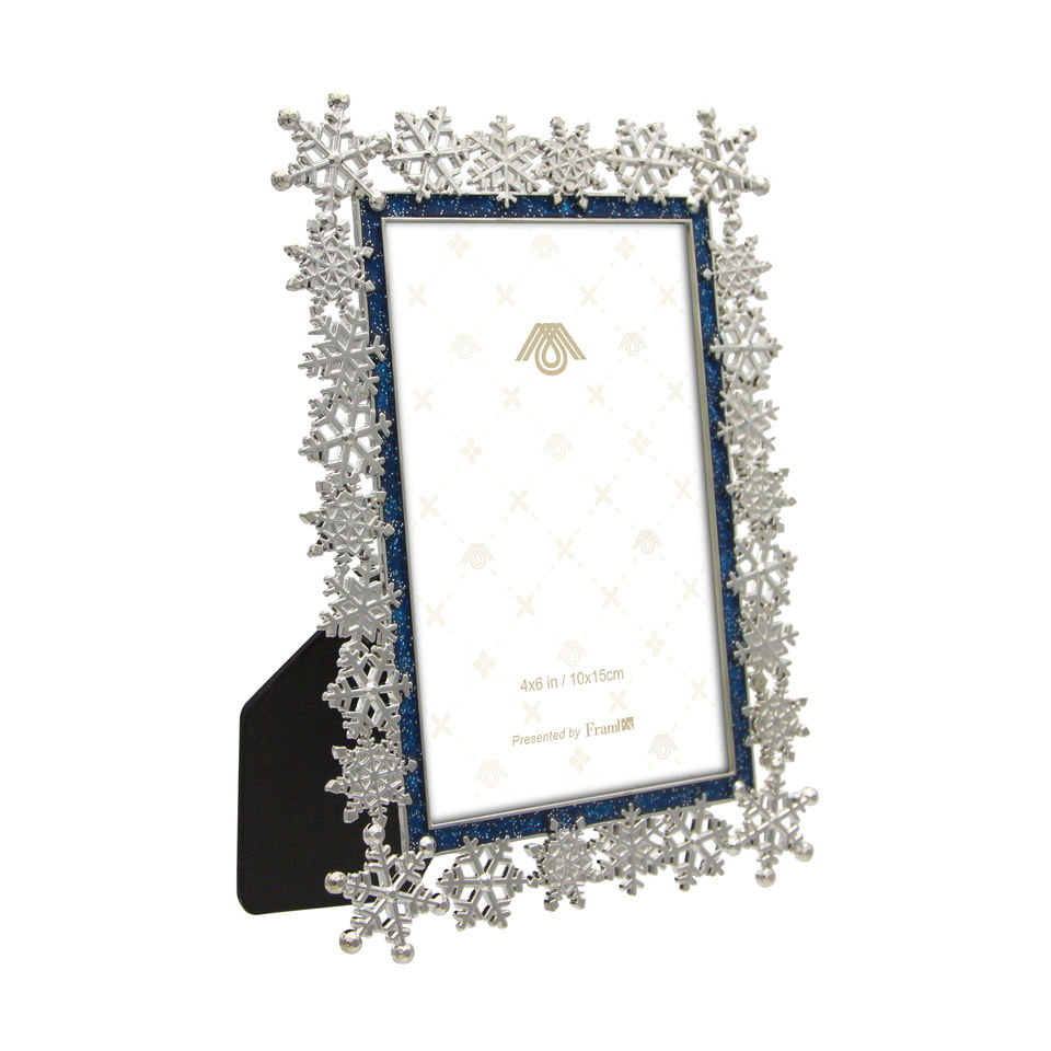 Cadre photo rectangulaire en alliage de zinc bleu marine personnalisable motif flocon de neige pour la décoration de la maison de Noël disponible en plusieurs couleurs