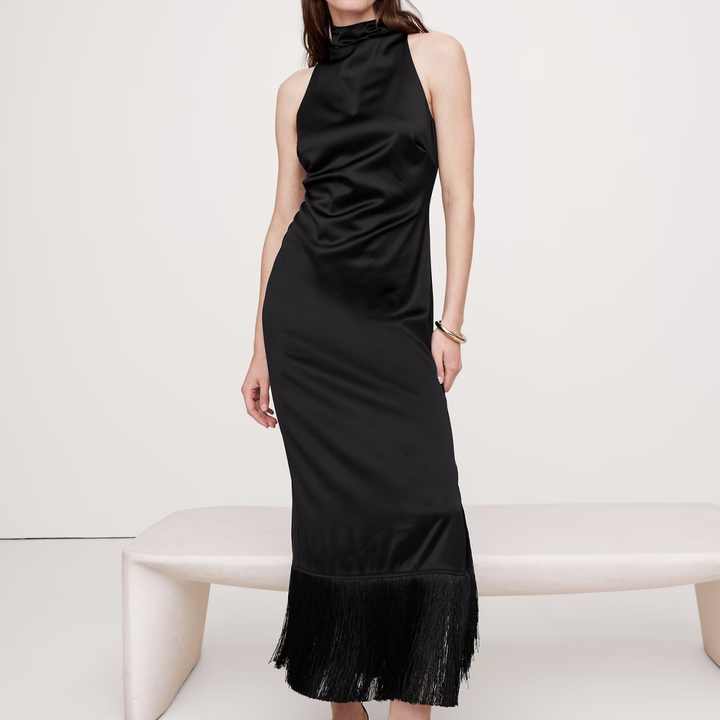 Robe de soirée sexy pour femme, nouvelle mode été 2025, personnalisable, robe longue en satin à franges