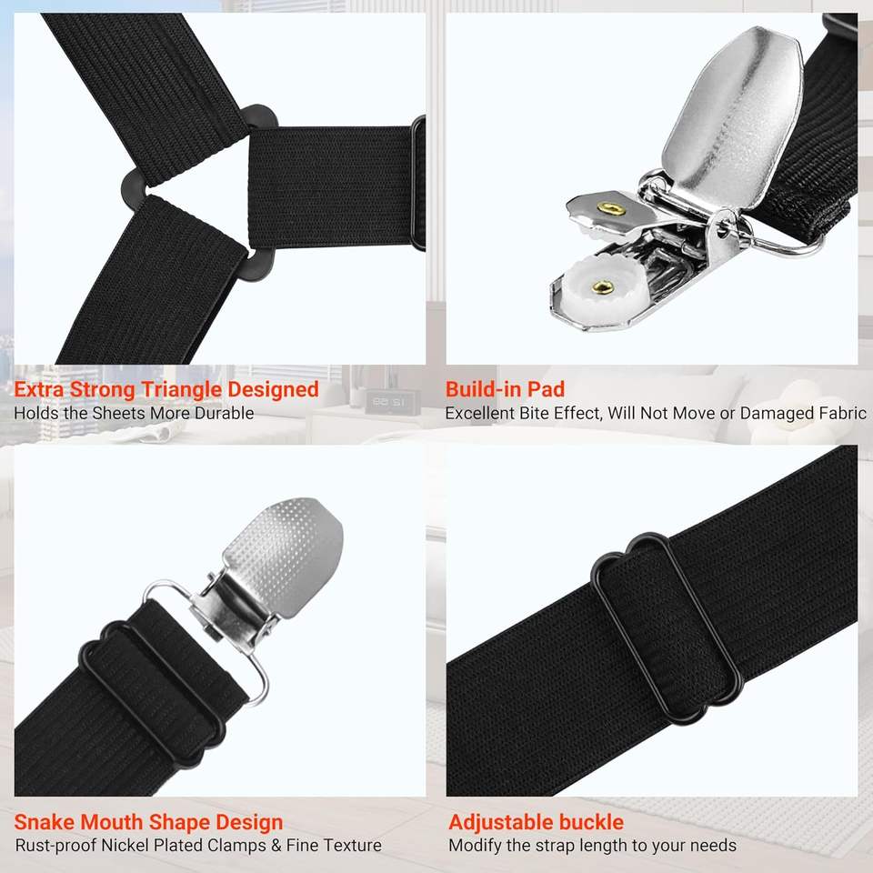 Nom du produit:Attaches élastiques antidérapantes pour draps avec pinces métalliques pour toutes tailles