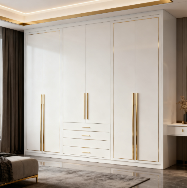 Garde-robe de style nordique personnalisable avec design à persiennes pour l'organisation de la chambre à coucher contemporaine et la vie minimaliste