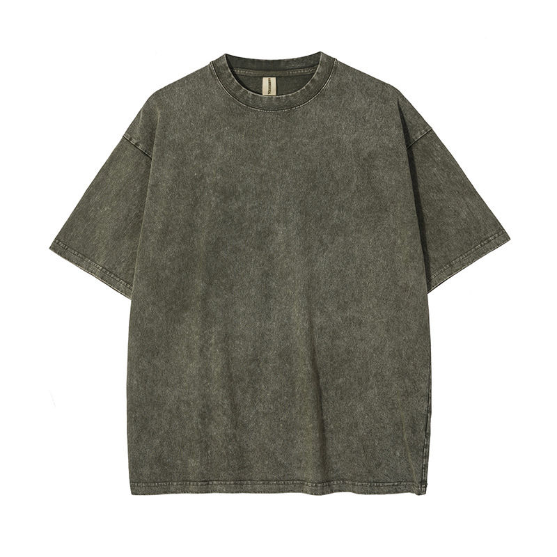 T-shirt oversize de fitness à col rond personnalisable, 100% coton, 250g, flocon de neige frit, jersey vintage lourd, décontracté, uni, teinture unie